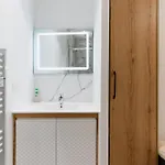 Αυτό το διαμέρισμα προσφέρει μπάνιο με μεγάλες πετσέτες μπάνιου.